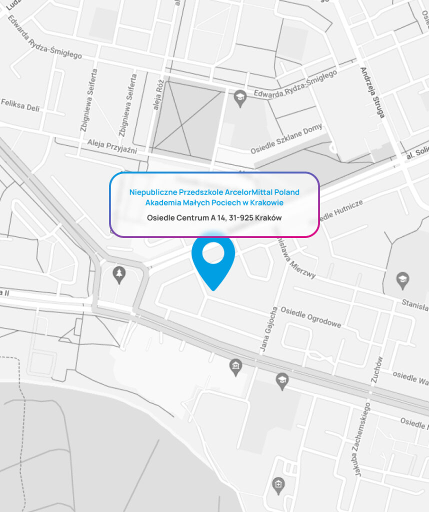 Przedszkola zlokalizowane są w promieniu kilku kilometrów od zakładów ArcelorMittal Poland w Dąbrowie Górniczej i Krakowie. Rodzice cenią sobie tę bliskość, głownie z uwagi na możliwość szybkiego kontaktu z dzieckiem, czy nauczycielem, w razie takiej potrzeby. Aby wziąć udział w wydarzeniach przedszkolnych nie muszą brać wolnego na cały dzień, gdyż przedszkole mają niejako pod ręką. Godziny otwarcia dostosowane są do godzin pracy rodziców w przedziale czasowym 5:30 – 17:00.